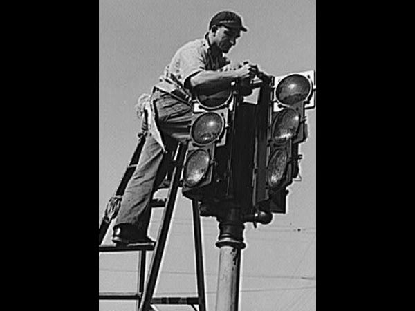 ಚಿತ್ರದಲ್ಲಿ: 1940ರಲ್ಲಿ ಸ್ಯಾನ್ ಡಿಯಾಗೊದಲ್ಲಿ ಟ್ರಾಫಿಕ್ ಸಿಗ್ನಲ್ ಆಳವಡಿಕೆ
