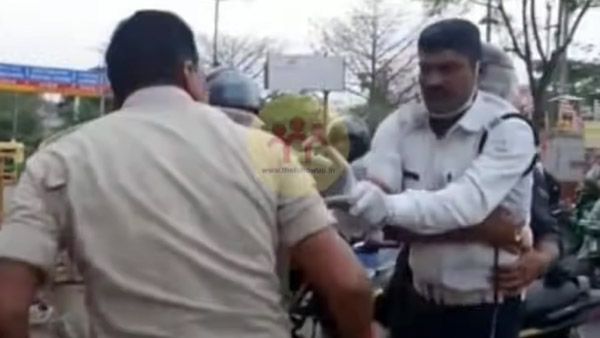 ದ್ವಿಚಕ್ರ ವಾಹನದಲ್ಲಿ ಹೆಲ್ಮೆಟ್ ಇಲ್ಲದೇ ಬಂದಿದ್ದ ಪೊಲೀಸರನ್ನು ಟ್ರಾಫಿಕ್ ಕಾನ್ಸ್ಟೆಬಲ್ ತಡೆದಿದ್ದಾರೆ. ನಮ್ಮನ್ನು ತಡೆಯಲು ನಿನಗೆ ಅಧಿಕಾರವಿಲ್ಲವೆಂದು ದ್ವಿಚಕ್ರ ವಾಹನದಲ್ಲಿದ್ದವರು ಟ್ರಾಫಿಕ್ ಕಾನ್ಸ್ಟೆಬಲ್ ಜೊತೆಗೆ ವಾಗ್ವಾದ ನಡೆಸಿದ್ದಾರೆ.
