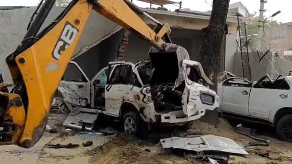 ಪೊಲೀಸರು ಬೇರೆಡೆಯಿಂದ ಜೆಸಿಬಿ ತರಿಸಿ ದುಬೆಗೆ ಸೇರಿದ ಮನೆಯನ್ನು ನೆಲಸಮ ಮಾಡಿದ್ದಾರೆ. ಈ ವೇಳೆ ರೌಡಿ ವಿಕಾಸ್ ದುಬೆಗೆ ಸೇರಿದ ಎರಡು ಕಾರುಗಳು ಮನೆಯೊಳಗಿದ್ದವು. ಪೊಲೀಸರು ಇದೇ ಜೆಸಿಬಿಯಿಂದ ಆ ಕಾರುಗಳನ್ನು ನಾಶಪಡಿಸಿದ್ದಾರೆ.