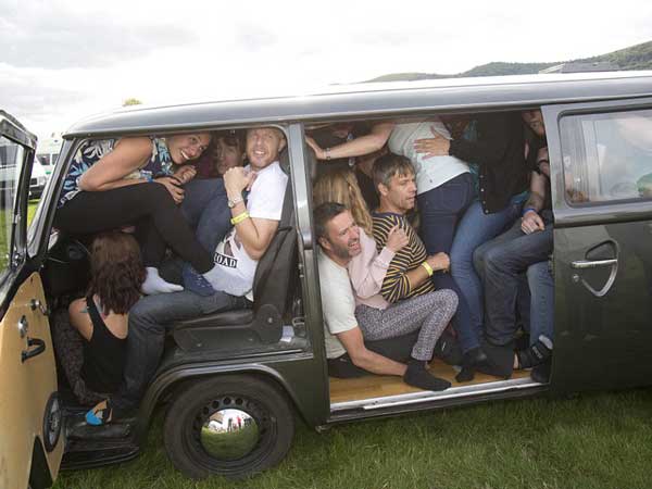 ಚಿತ್ರದಲ್ಲಿ ನೀವೇ ನೋಡುತ್ತಿರುವಂತೆಯೇ ಎಲ್ಲ ವಿಭಾಗದ ಪ್ರಾಯ ವರ್ಗದವರೂ ಸೇರಿಕೊಂಡು ಉಸಿರುಗಟ್ಟಿಸುವ ರೀತಿಯಲ್ಲಿ ಫೋಕ್ಸ್ವ್ಯಾಗನ್ ಮಿನಿ ವ್ಯಾನ್ನಲ್ಲಿ ತಮ್ಮನ್ನು ತಾವೇ ತುರುಕಿಸಿಕೊಂಡಿದ್ದರು.