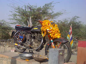 ರಾಯಲ್ ಎನ್ ಫೀಲ್ಡ್ ಕಂಪನಿಯ ಬುಲೆಟಿಗೆ ಇಲ್ಲಿ ಈಗಲೂ ಪೂಜೆ ಪುನಸ್ಕಾರಗಳು, ಬಜನೆ, ಆರಾಧನೆಗಳು ನಡೆಯುತ್ತಿದೆ. ಇದು ಅಚ್ಚರಿಯಾದರೂ ಸತ್ಯ. ರಾಜಸ್ಥಾನದ ಪಾಲಿ ಹೆದ್ದಾರಿಯಲ್ಲಿ ಸಾಗುವರೊಮ್ಮೆ ಇಲ್ಲಿಗೆ ಭೇಟಿ ನೀಡಬಹುದು.