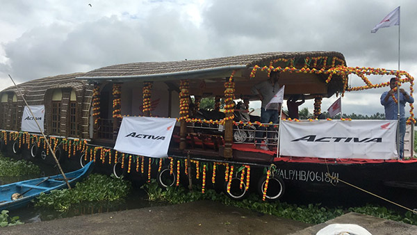 ಹೊಸ ಉಪಕ್ರಮದೊಂದಿಗೆ ಹೋಂಡಾ ಕಂಪನಿಯು ತನ್ನ ಜನಪ್ರಿಯ ಆಕ್ಟೀವಾ ಸ್ಕೂಟರ್ ಅನ್ನು ಪ್ರದರ್ಶನಗೊಳಿಸುತ್ತಿದ್ದು, ಓಣಂ ಆಚರಣೆಗೆ ಮುನ್ನ ಅಲೆಪ್ಪಿಯ ಅರುಕುಟ್ಟಿಯಿಂದ ಆರಂಭವಾದ ಹೌಸ್ ಬೋಟ್ ಶೋರೂಂ ಅಭಿಯಾನವು ಇದೀಗ ಅಲಪ್ಪುಳಕ್ಕೆ ತಲುಪಿದೆ.